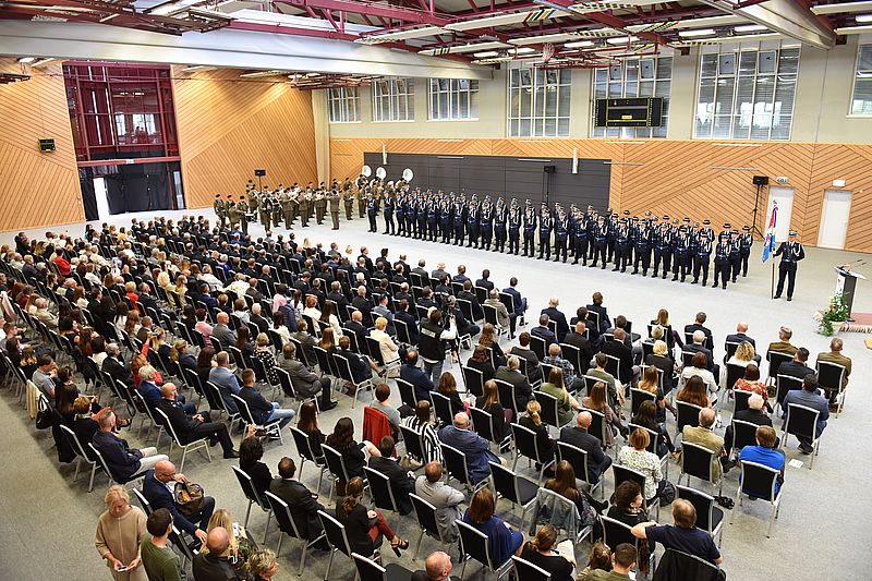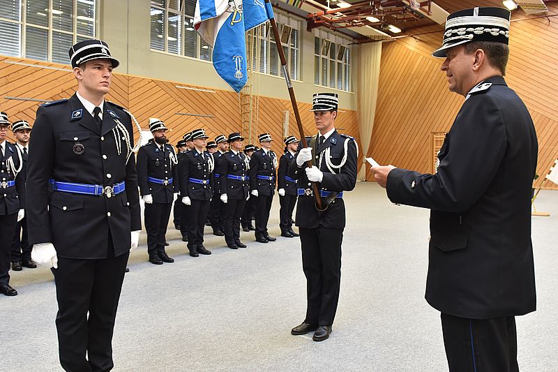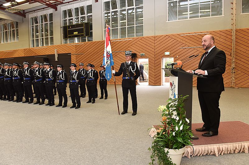 Le 13 septembre 2018, soixante-cinq nouveaux policiers de la 18e promotion des volontaires de police ont prêté, au Hall Omnisports « Krounebierg » à Mersch, serment entre les mains du Directeur générale de la Police grand-ducale, Monsieur Philippe Schrantz, en présence du ministre de la Sécurité intérieure, M. Etienne Schneider. La cérémonie a été encadrée par un ensemble de la Musique militaire.