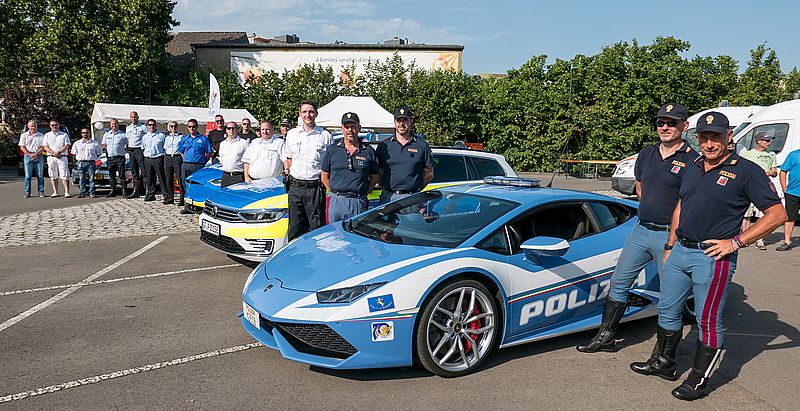 - Polices d’autres pays avec leur charroi, des groupes canins et des chevaux de Police.