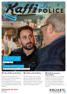 Le jeudi, 15 janvier 2026 se déroulera la troisème édition du « Op e Kaffi mat der Police » au « Casa Baffone » à Luxembourg-Gare. De 16 à 18 heures, les habitants du quartier auront l’occasion d’échanger avec des agents de Police au sujet de leurs doléances dans une atmosphère plus conviviale et moins formelle que dans un commissariat de Police.