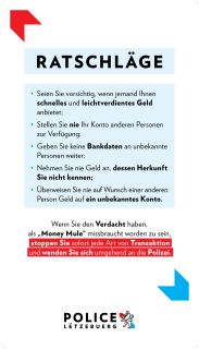 - Heben Sie kein Geld ab oder überweisen Sie kein Geld, dessen Herkunft Sie nicht kennen;