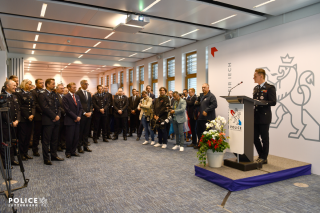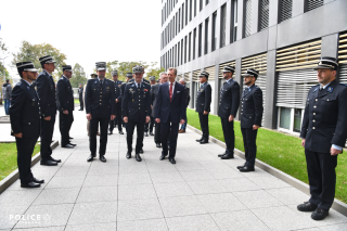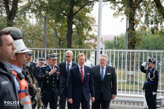 En début de visite, un moment de recueillement a été observé devant la stèle de la Cité policière Grand-Duc Henri en mémoire du personnel policier décédé en mission.