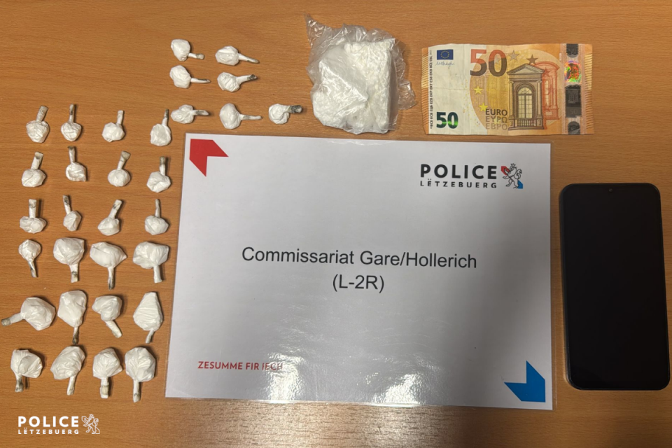 Am späten Nachmittag des 27.11.2025 wurde eine Polizeistreife in Höhe der Place de la Gare im hauptstädtischen Bahnhofsviertel auf einen Mann aufmerksam, der sich beim Erblicken der Beamten schnellen Schrittes in die Avenue de la Gare begab. Bei einer anschließenden Kontrolle, ergriff der Mann erneut die Flucht, konnte allerdings umgehend gestellt werden. Beim Tatverdächtigen wurden mehrere Drogenplomben, ein Mobiltelefon, Bargeld und ein Taschenmesser sichergestellt und beschlagnahmt. Auf Anordnung der Staatsanwaltschaft wurde er festgenommen und am Morgen des 28.11.2025 einem Untersuchungsrichter vorgeführt.
