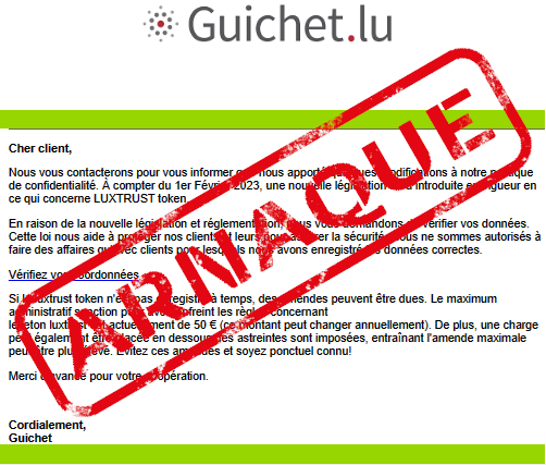 Nous recommandons aux personnes qui auraient reçu ce message de le supprimer sans donner suite aux demandes y formulées.