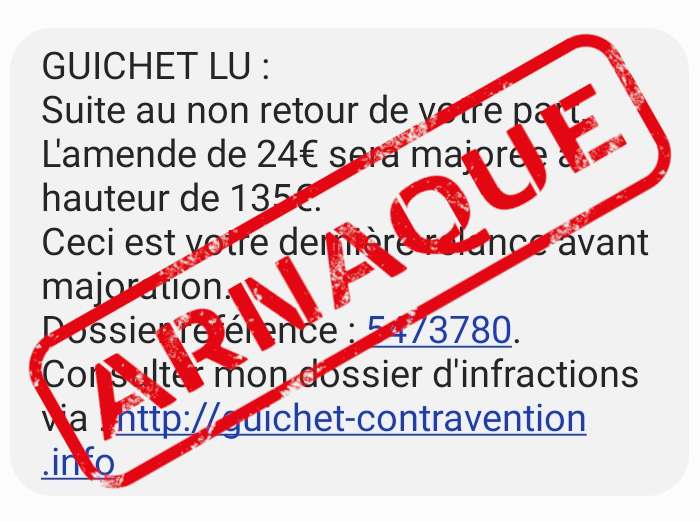 Des escrocs envoient des SMS ou E-Mails comme expéditeur présumé d’un ministère, d’une administration ou d’un établissement public. Le but de la fraude est d’obtenir les données personnelles (p.ex. le numéro de carte de crédit avec le code de sécurité approprié) par le biais d’un lien ou bien d’inciter la victime à effectuer un paiement.