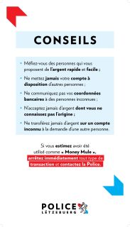 Si vous suspectez avoir été utilisé comme Money Mule, arrêtez tous types de transactions et contactez immédiatement la Police.